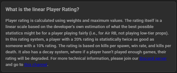 I mean I get you and I somewhat agree, but if person has, say, yellow SR1 and then I go check the vehicles he plays and hes 17 KD in Spitfire with 4k battles I know damn well to not ever cross his path even if his SR1 might be yellow. (fun story, just the other day I saw Tornado F.3 being played by someone named “Trigger” after the AC7 protagonist, I went in to check his profile for fun only to learn he had KD of 7 in said plane. my smile quickly turned into expression of horror).