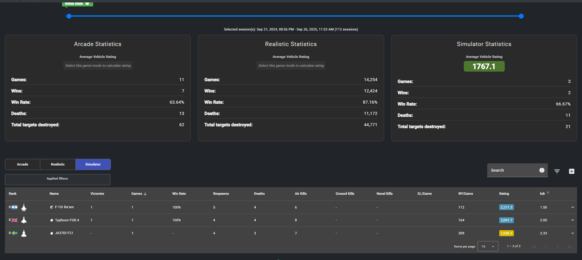 And you can just as easily check the vehicles I’ve been playing the most over a certain number of sessions and with what results, also by using Statshark. For example, this is for the last month:
