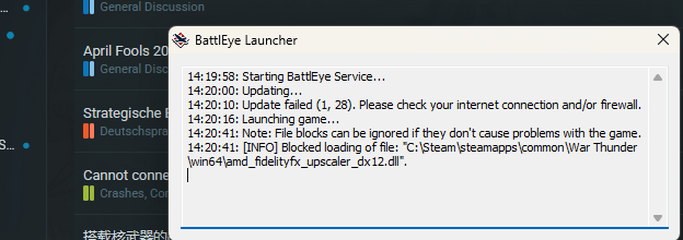 Fidelityfx is being blocked by your battleye updater, that doesn’t mean you’ll be banned, you should turn it off to not get the launcher error.