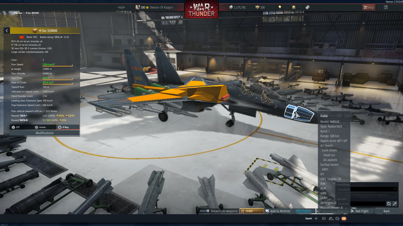 These premiums are capable enough to be minimum at 13.7, it has the big payload, the same radar of SU-27SM and the engines of the SU-27 (Which it doesn’t make it slow or goofy enough to be an exception).
