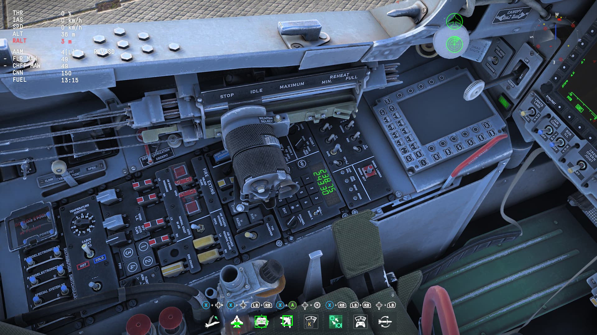 Most of the cockpit is in English, as shown in the screenshot above. This makes sense. The Su-30MKM and the Su-30MKI (Indian version) were designed for nations where English is used as the aviation language. This means the cockpits were labeled in English. Admittedly, the cockpit model reuses some of the Russian MFD and sight assets, so there is SOME Russian there. I am (mostly) willing to overlook this minor issue, though.