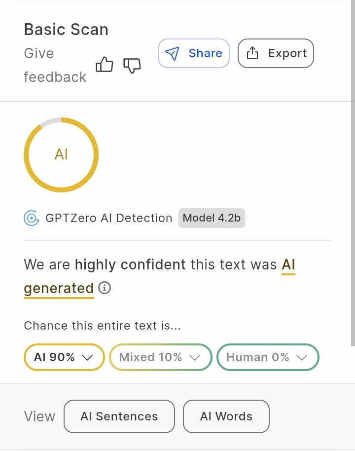 Those AI detector sites aren’t reliable and give different percentages depending on the site. But even if it was AI, that still has nothing to do with the actual suggestion.
