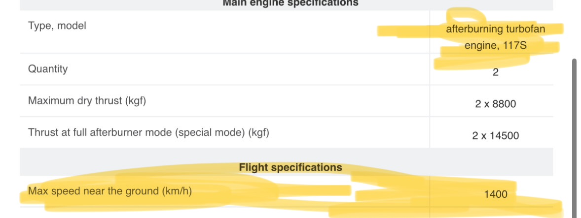 Su-34 is especially egregious because its max speed is only 1100 kph near the ground and Mach 1.5 at altitude lol