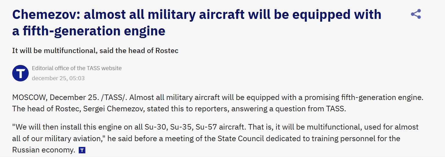 conspiracy mode on what if Su-30SM2 with new eniges was delayed several times because it was not AL-41F-1S that was planned for them, but Izd 177 and MoD just waited untill tests are over?