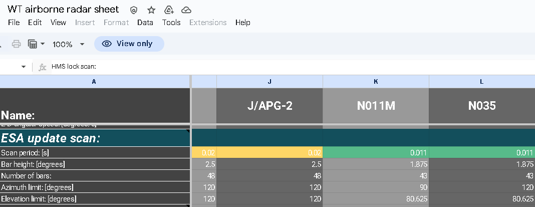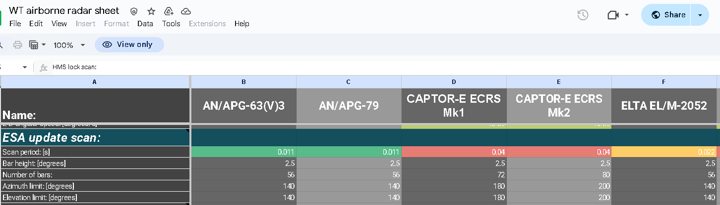 here is the sheet, made by Horiane. : WT airborne radar sheet - Google Spreadsheets