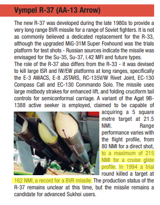 also, considering modified r-33 with a lofting algorithm was able to reach 228km range, i doubt rvv-bd;s max range is only 200km (which looks like export modified r-37 and not r-37m)