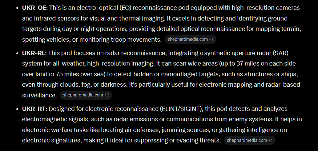I don’t have any kind of trust towards ai but the answer seems coherent with the variant names so it’s probably roughly true. What I’m wondering is if they could put several pods on one Su-34