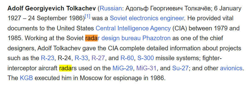 There is a bit of a problem, however. PESA for N001 was dropped in 1983. Tolkachev was caught in 1985.