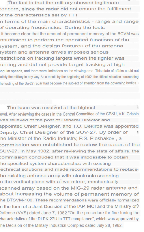 It has pretty detailed information about radar trials and all the problems that PESA version of N001 encountered during them. I only made a screenshot of the final paragraph