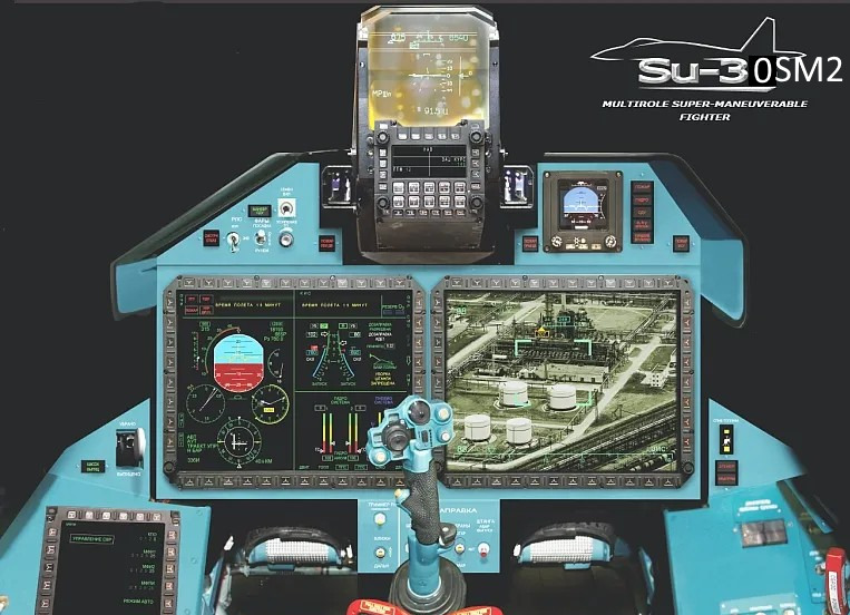 Probably su30sm that came out of production post 2014 sanctions? Therefore no more Thales HUD.