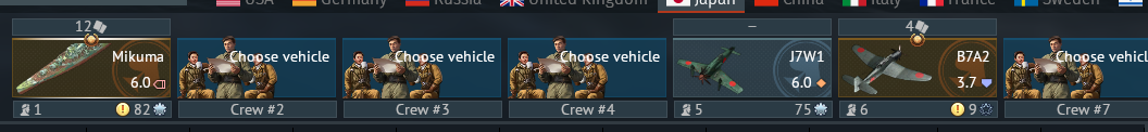 If I do naval I’m gonna grind for the Yamato. Lemme see how many CP (crew points) my Japan air slot has.