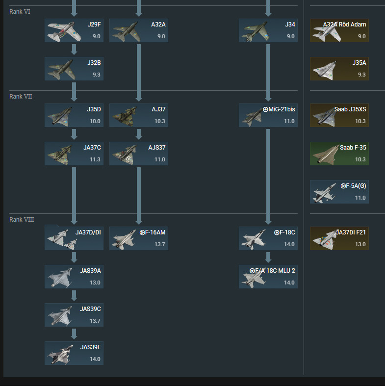 In General, Sweden lacks a toptier prmnium jet with good cas cababilities. (Guided Bobs/Fire forget missel). Evrey Nation has one (Exept Italy, France: