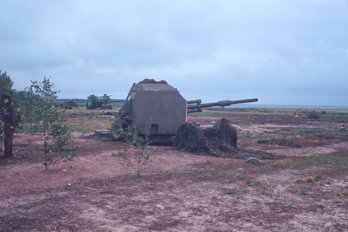 The piece is semi-automatic. This means automatic cocking of the mechanism after each shot, but manual loading. Side and elevation aiming are done manually using cranks. Four men are required to operate the piece, namely two for aiming in azimuth and elevation respectively, and two for loading. Additionally, two men are required for ammunition handling.