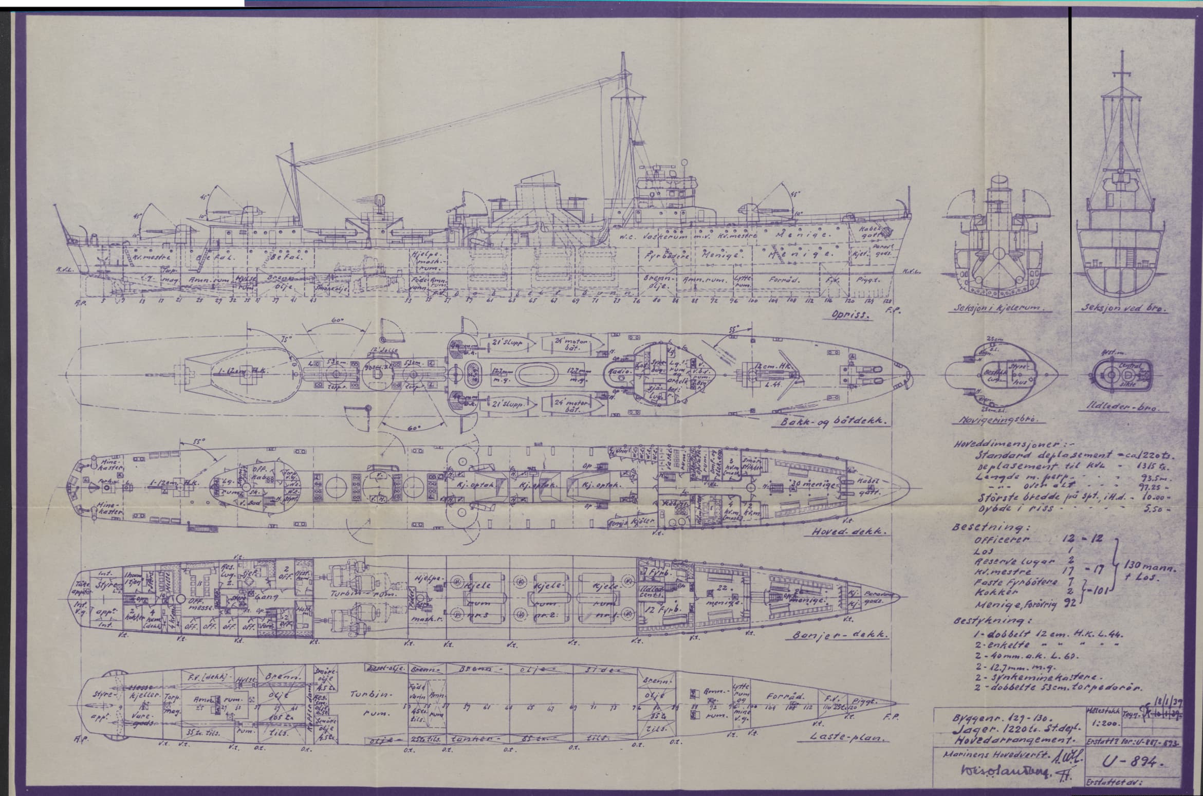 Comment: Construction ordered in 1939. Never laid down due to the outbreak of war.