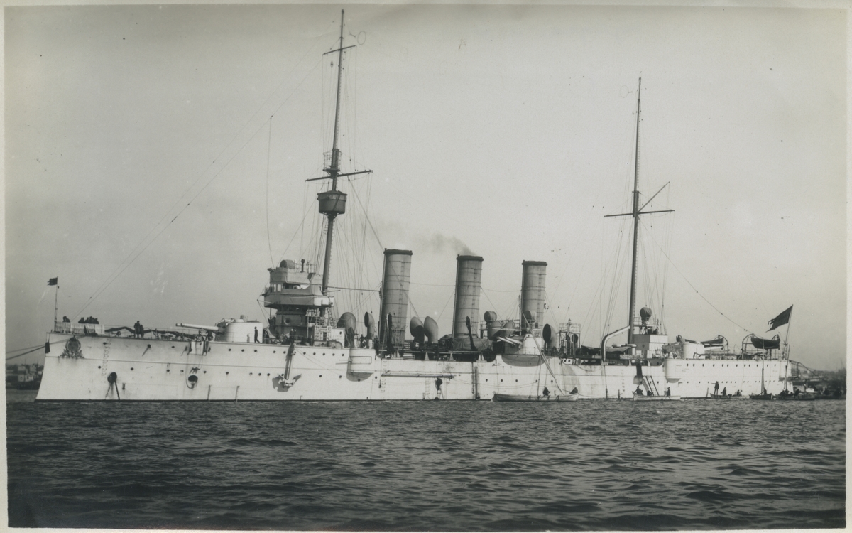 Comment: Göta Lejon in Chilean service as Almirante Latorre. Modified with covered flying bridge and reconfigured rear mast.