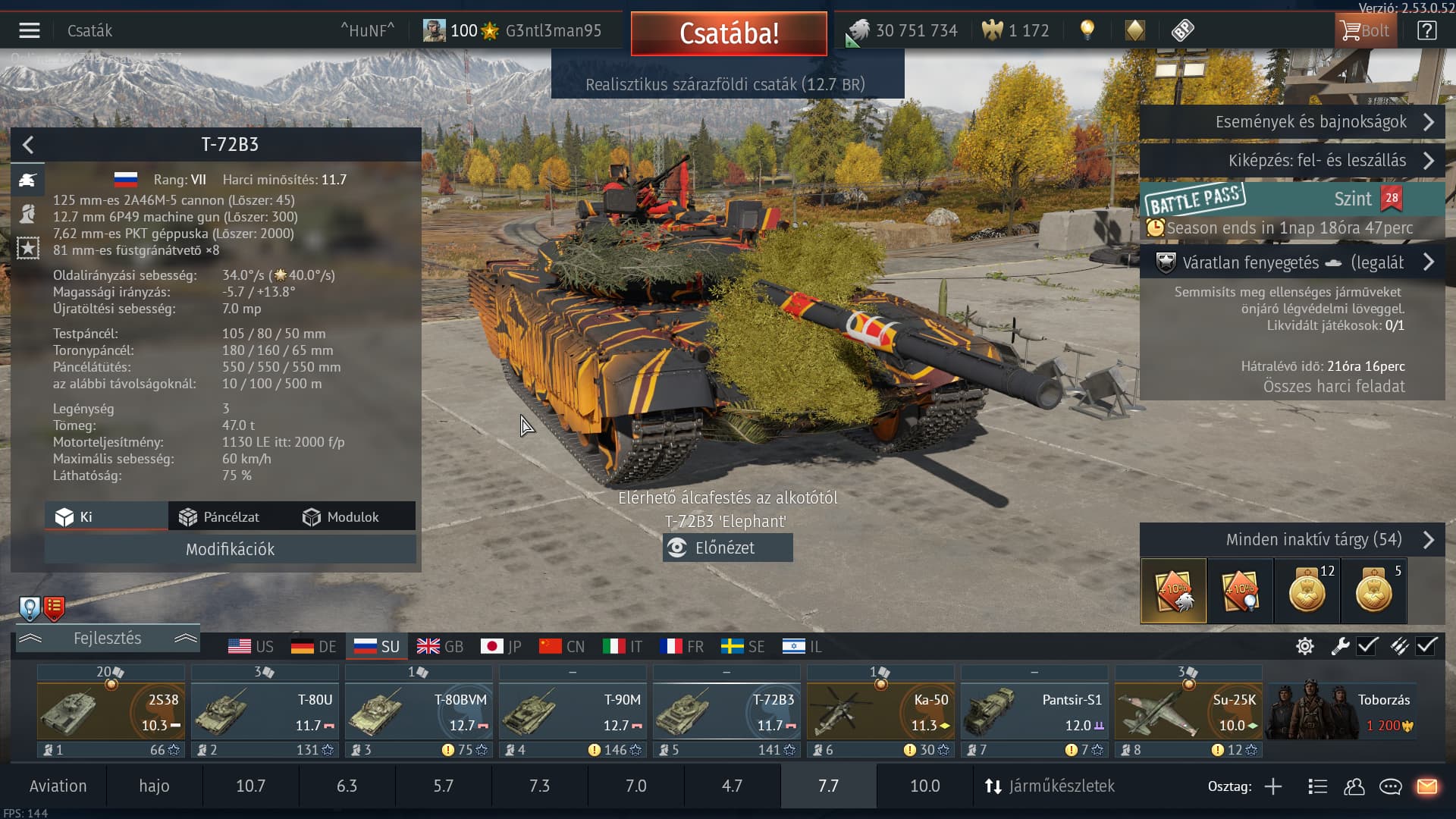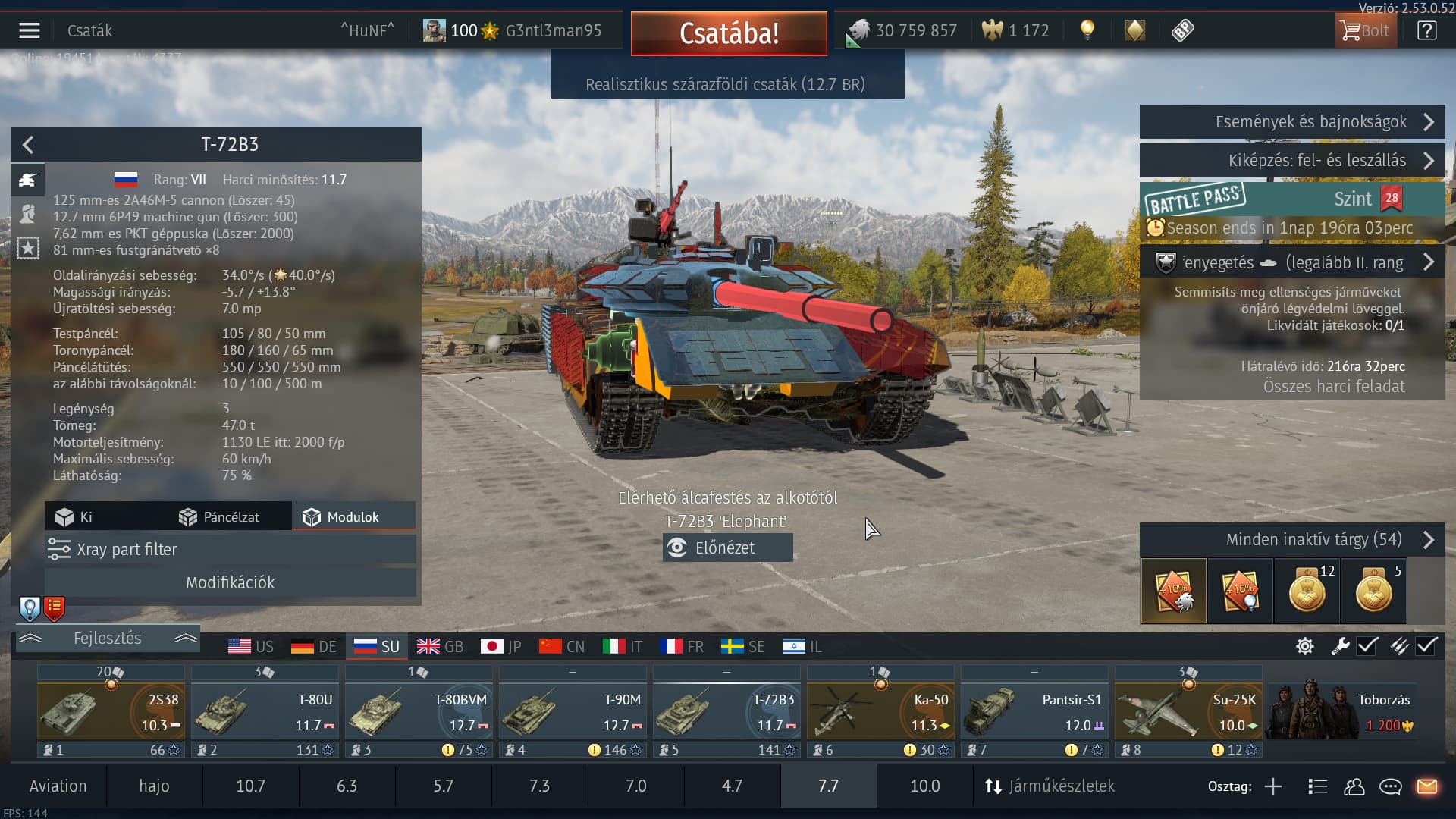 The only reason the T-72B3 is 11.7 is because of the UBH mod giving it a 1130hp engine which the event B3 Arena doesn’t get