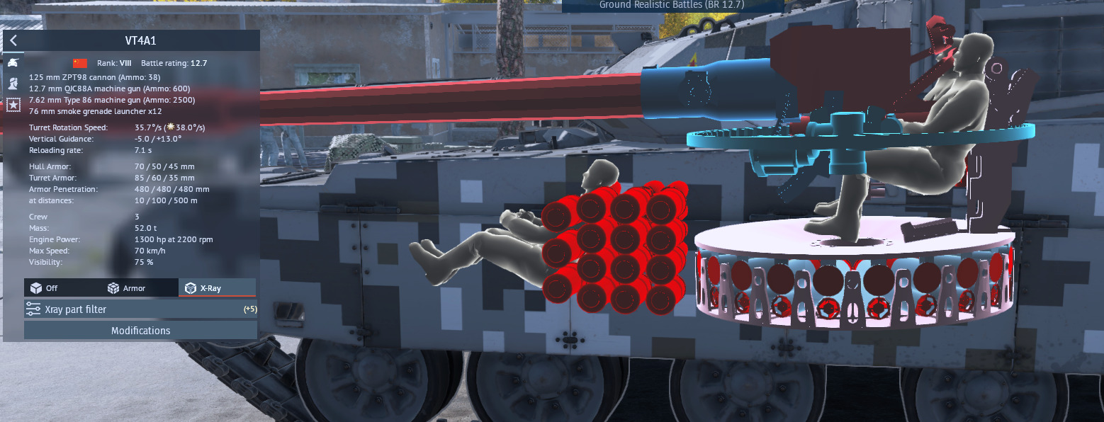 Oh, but it is totally different for Chinese tanks. It is obvious that the ammunition of Chinese tanks is completely out of the range of armor in the game (very strange), which leads to that Chinese tanks have good main armor but not very good survivability. If it can be determined that there is a issue about the magazine position of Chinese tanks, then their survivability should be significantly improved by fix it.