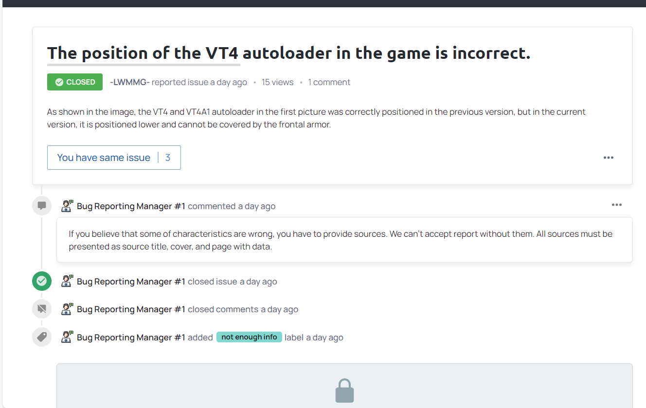 Another embarrassing incident occurred, a player raised this issue and it was closed on the grounds of ‘not enough info’: