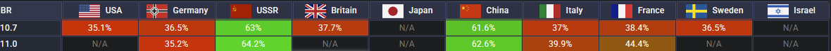 If you look at blue force nations, Germany since you used the 2A4. Their last decent line up is 10.3. And that one has NO MBT unless you uptier the Leo 2k. 10.7 only has some orphaned vehicles/event vehicles. 11.0 basically just the Spike PUMA. The last BR change even killed the 11.7 line up.