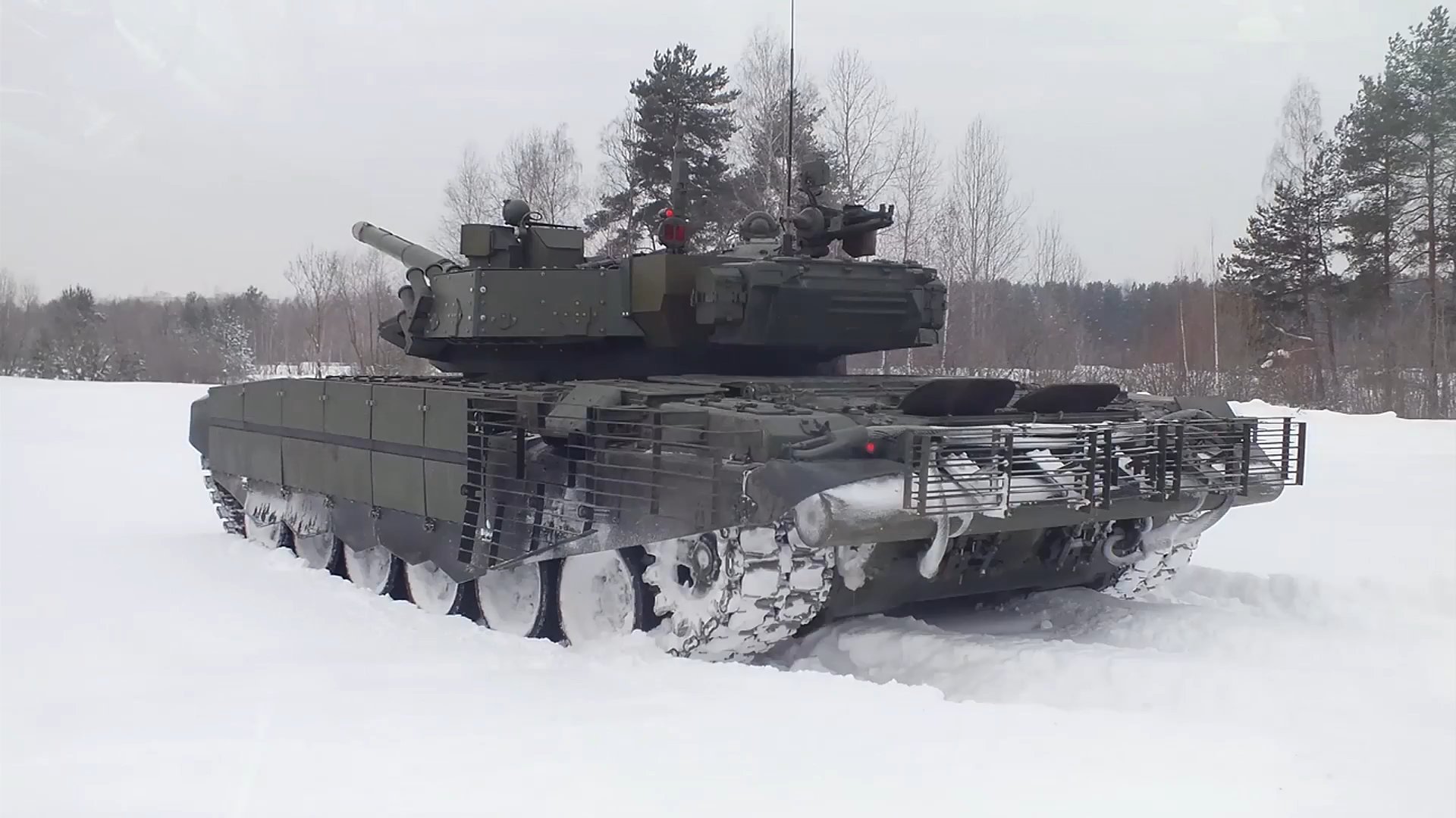 The T-90, which was the next step of the modernization of the T-72B. It kept the same armor and propulsion layout as in the T-72B. But internally, the fire control system was replaced with new components and on the outside the shtora-1 soft-kill aps was installed. It started development in 1988 and was adopted in 1992.