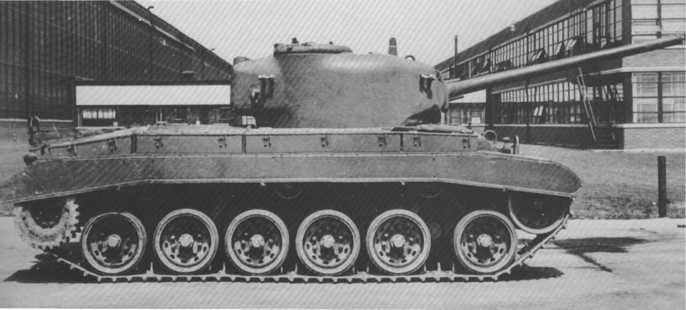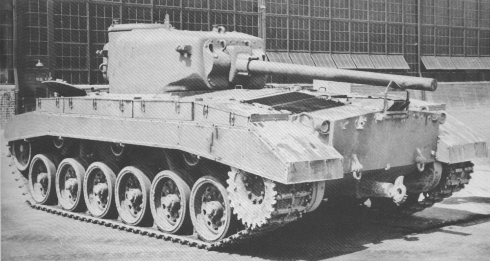 Development of a replacement for the Medium Tank M4 began in the spring of 1942, almost immediately after the M4 Sherman was standardized. This project was initiated as the M4X program, which eventually produced the Medium Tank T20. On August 26, 1942, the Ordnance Committee approved development of three variants: the T20 with the 76 mm M1A1 gun, the T20E1 with the 75 mm M3 gun and an autoloader, and the T20E2 with the 3-inch M7 gun. The T20 chassis had a lower silhouette and a more compact hull than the Sherman, retaining the VVSS suspension and drivetrain details. This reduction in size was made possible by the use of the new Ford GAN V-8 engine paired with a rear transmission and rear sprocket drive layout, eliminating the tall transmission tunnel that had been so distinctive on the Sherman.