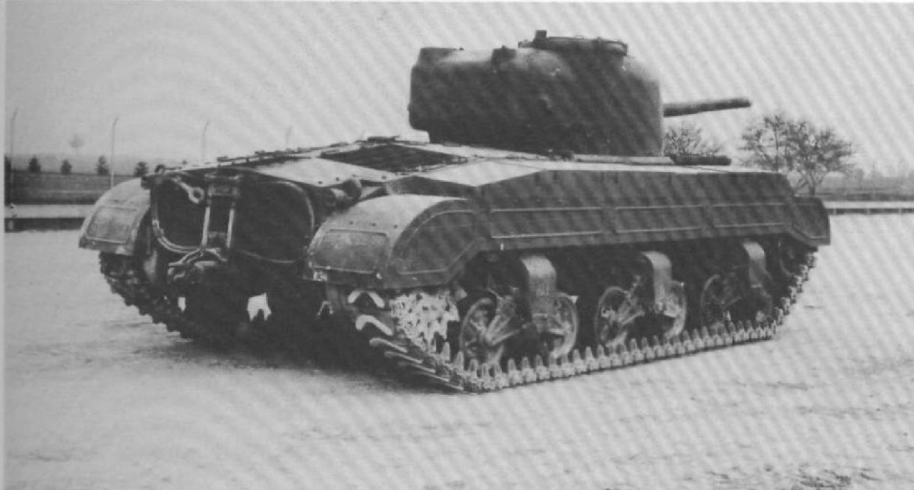 Two pilot vehicles were completed in June 1943, carrying registration numbers 30104304 (pilot No. 1) and 30104305 (pilot No. 2). Both used the early horizontal volute spring suspension (HVSS) with direct-action shock absorbers on the front and rear bogies, also used on the T20. This provided a slight improvement in ride quality over the Sherman’s vertical volute spring suspension (VVSS), but since the T22 still used the narrow 16 9/16-inch tracks, the improvement was not considered sufficient to justify halting Sherman production for a redesign.