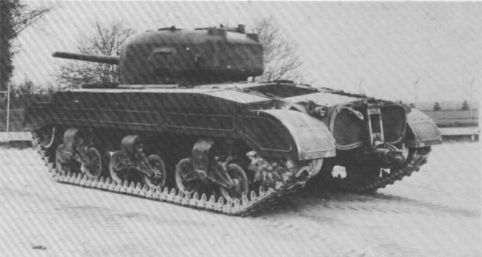 This led to the development of the T22 in late 1942. Between September and October, Chrysler was contracted to build two pilot tanks that were nearly identical to the T20, including use of the Ford GAN V8 engine, but fitted with the M4A3 Sherman’s synchromesh transmission. Unlike the Sherman, the transmission was fitted behind the engine in the hull and ran through the rear wheel drive.