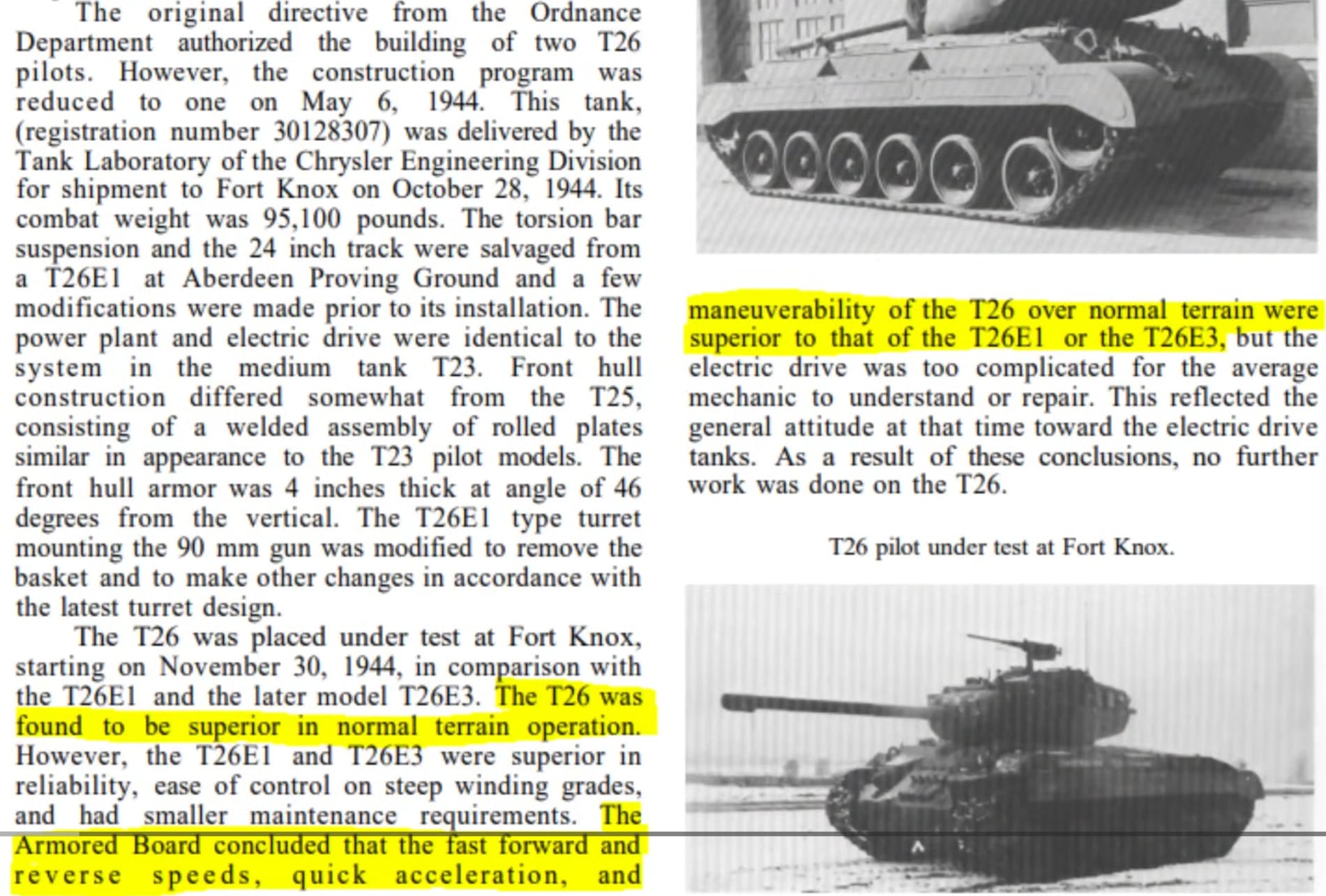 There is even a direct mention of the noticeably superior electric drive mobility of the T26 (a modified T25 with heavier armour) compared to later variants with the normal transmission, including the T26E1 and T26E3 (M26 was originally called this during WW2).