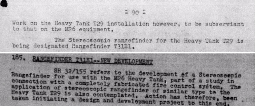The T29E3 at Aberdeen Proving Ground, May 4th, 1948.While the first T29 was diverted to use a new Allison V-1710-E32 engine, and the second to use a hydraulic power turret traverse mechanism and T5E2 gun, T29 #8 was modified to install the T31E1 rangefinder and T93E2 telescope in the T136 mount. Provisions were made to mount the T141, T144, and T145 panoramic sights to evaluate their use for indirect fire. The T145 was mounted in the turret roof, while the former two would be used by the gunner’s periscopic sight. This was part of early attempts to look into integrated fire control systems. Much like how the first and second T29s were redesignated T29E1 and T29E2, #8 was redesignated T29E3. While on paper the T31E1 rangefinder would allow the gunner to give a target his undivided attention, it worked poorly in practice. Despite the poor results, the tests did show that the stereoscopic rangefinder was useful for spotting purposes, and furthered enthusiasm about the design’s ability to enable a crew to hit their first shot at distances over 1,000 yards.