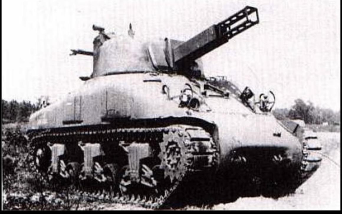 Prior to Operation Overlord, German fortifications were identified as a significant obstacle for Allied armour. The Sherman’s 75mm HE shell was effective against infantry and the 105mm could handle some emplacements, but in certain situations there would simply be a need for more explosives than the tanks could provide. The solution was simple- take the proven 114mm M8 rocket, and attach as many of them as possible to the standard M4 Sherman turret. This was the T34 Calliope, named after the instrument it vaguely resembled. While each rocket only contained around the same amount of explosives as a 105mm HE shell, the Calliope could unload its 60 rockets in seconds, saturating the target area in an overkill amount of explosives. Additionally, the sound of the rockets could have a demoralizing effect.