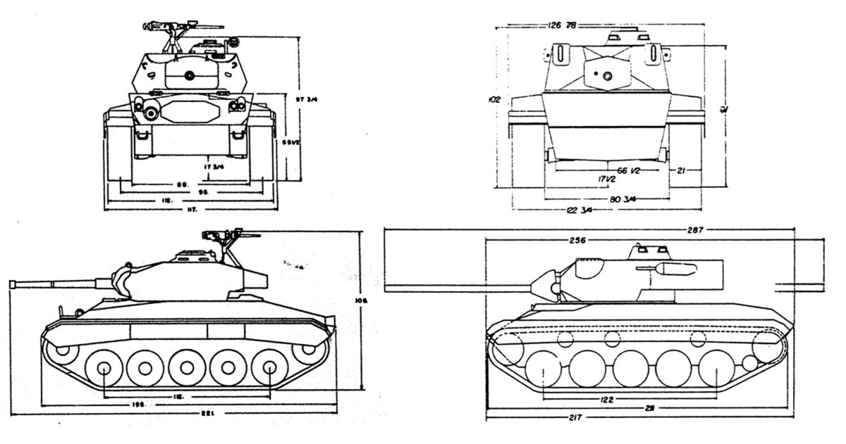 The specifications called for a vehicle weighing around 25 tons, with greater firepower and mobility than the M24. Its gun was required to penetrate 5 inches of homogeneous armor sloped at 30 degrees at a range of 1,000 yards.