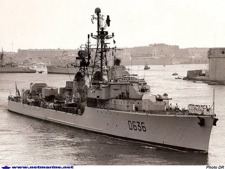 Built in the Nantes shipyards from 1954, the Tartu was commissioned into the French Navy in February 1958. The ship was quickly assigned to patrol missions in the Mediterranean along the coast of North Africa, allowing France to monitor the comings and goings of ships, particularly during the Algerian War. After this conflict ended, the Tartu conducted various exercises with the French fleet and its allies, before being assigned to overseas territories, where it spent many years. The ship was decommissioned in 1978 after 20 years of service and over 500,000 nautical miles covered on various seas and oceans. Once decommissioned, the Tartu served as a breakwater and then as a training target for testing various naval weapons. It was hit by GBU-12s and Exocet missiles during various exercises.