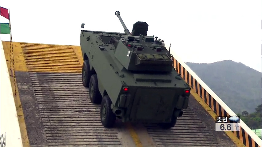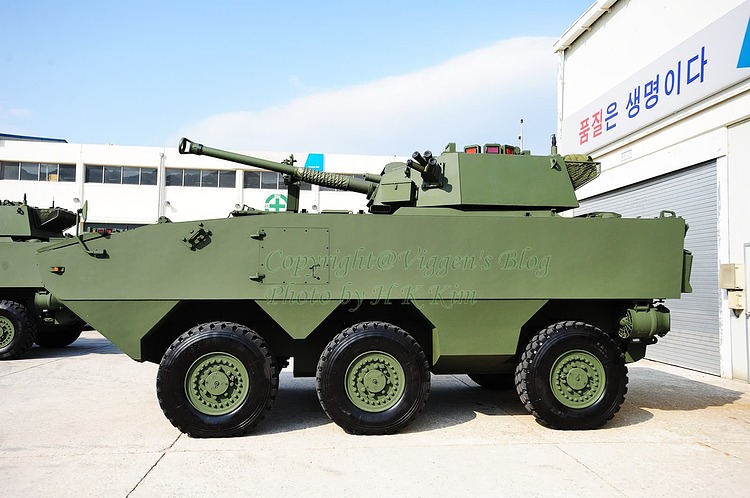 The Black Fox APC has a crew of three and can carry 9 troops which can exit the vehicle via the rear ramp or roof hatches. In regards to armor, all-around the vehicle are protected from small arms fire and fragmentations and can withstands hits from a 12.7mm round with additional armor plating also available if needed. The vehicle also has a conventional front-mounted engine layout, with it being powered by a diesel engine providing 380 hp. The vehicle has an automatic transmission and steering on the front four wheels. Originally its not amphibious but that option was added later on. Additionally it can be air-transportable by the C-130 Hercules aircraft. Eventually it was decided that Rotem’s design was to be chosen and they were named the K806 & K808.