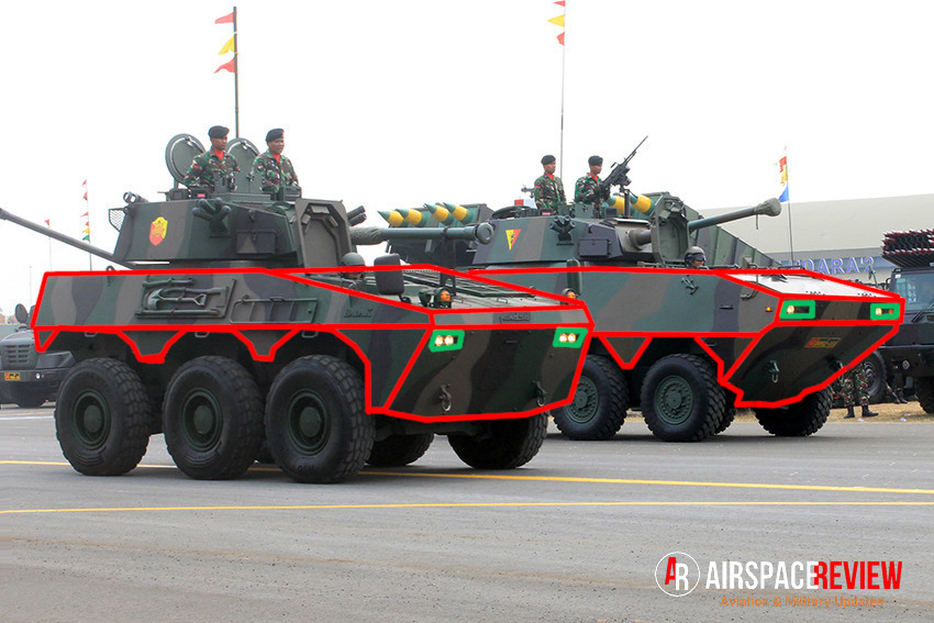 The Badak’s fairing has a more rounded shape and the Tarantula has a boxier shape, the front headlights is also placed differently, with the Badak’s headlight at the lower front glacis rather than the top glacis like the Tarantula. The sides is also completely different, with the Badak having a shorter upper side hull than the Tarantula