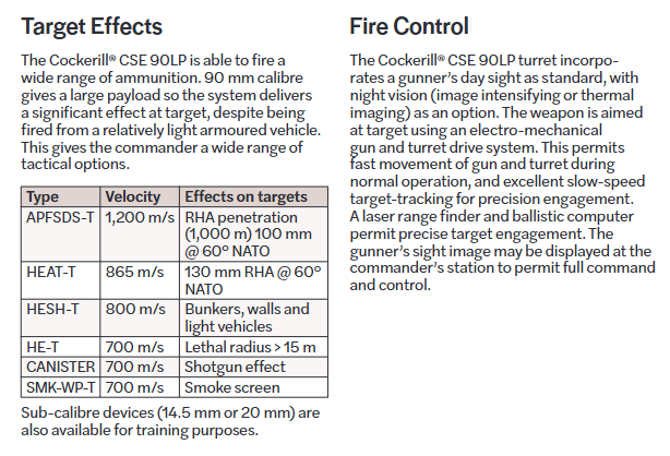 - Gun: 90mm Cockerill MK.3 MA1 Low-pressure gun