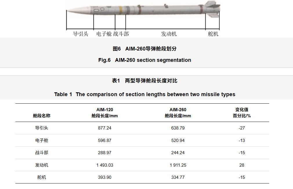 The paper lists the AIM-260’s basic physical specs as length 3.65 m, diameter 178 mm, and mass 163.5 kg