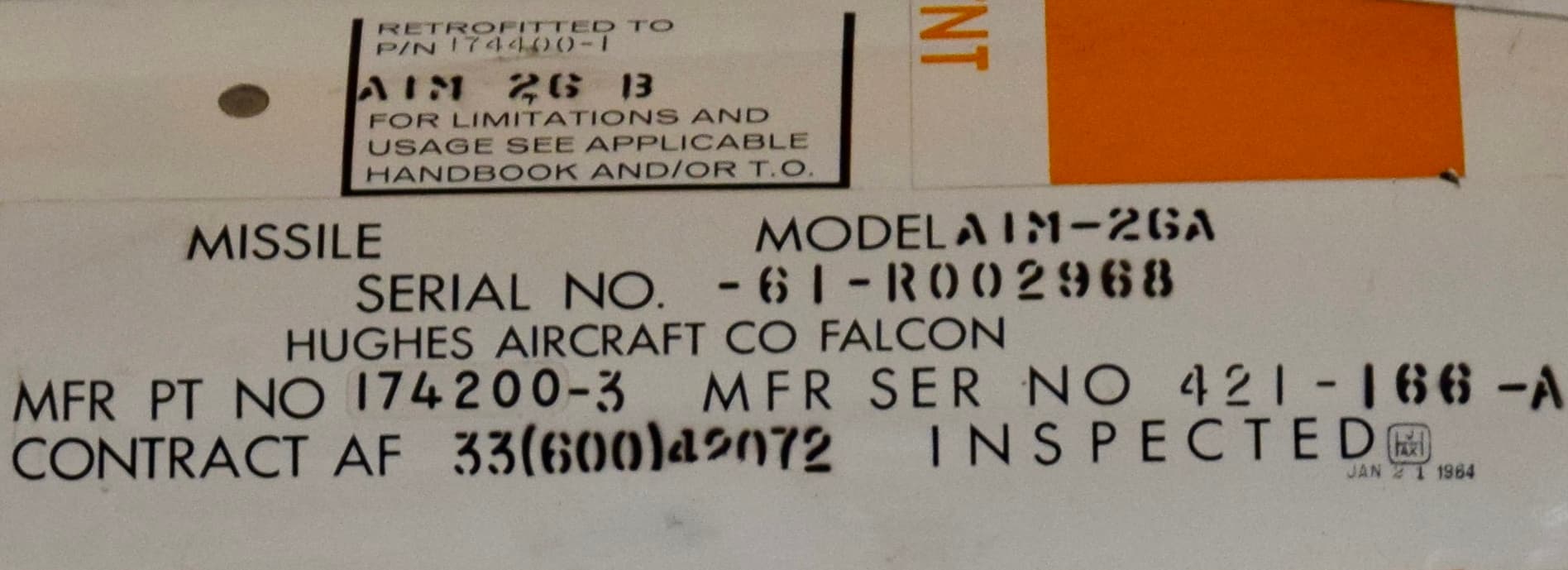 It is also worth noting that the AIM-26A could be retrofitted to the AIM-26B standard by replacing the nuclear warhead with a conventional warhead. There is a photographic example that shows an AIM-26A airframe that was modified to carry the conventional warhead and effectively became AIM-26B standard.