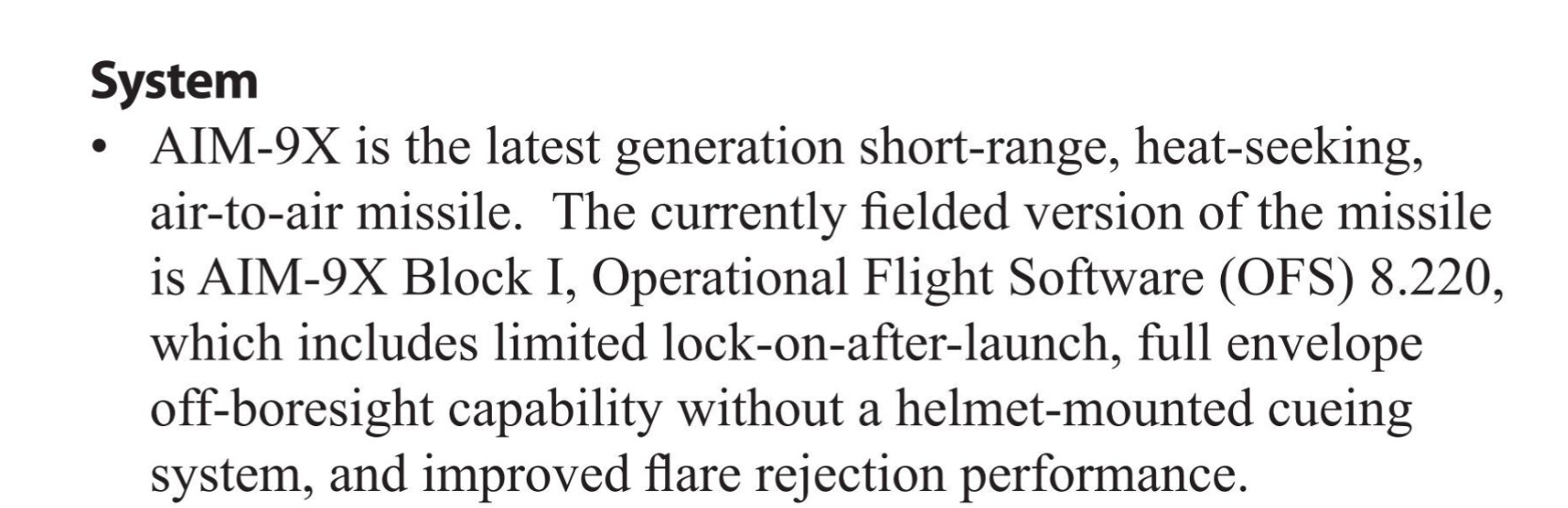 There are also a lot of comments in this thread that take tests and evaluations and extrapolate them to absolutes. Missiles are not the perfect things games present them as, and even if an evaluation states that they were not able to get a 9L to be decoyed if it was locked onto the plume, that does not mean that this is always the case, but rather it was the case in their certain scenario.