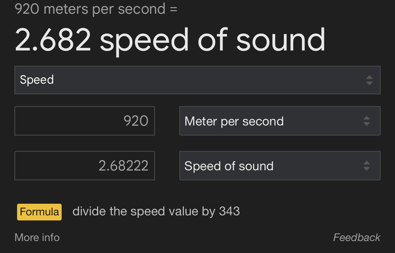 Once again I hardly believe this as the in game listed maximum speed is 920m/s, this speed is also on the data miners guided weaponry sheet. 920m/s is Mach 2.682 not 2.87.