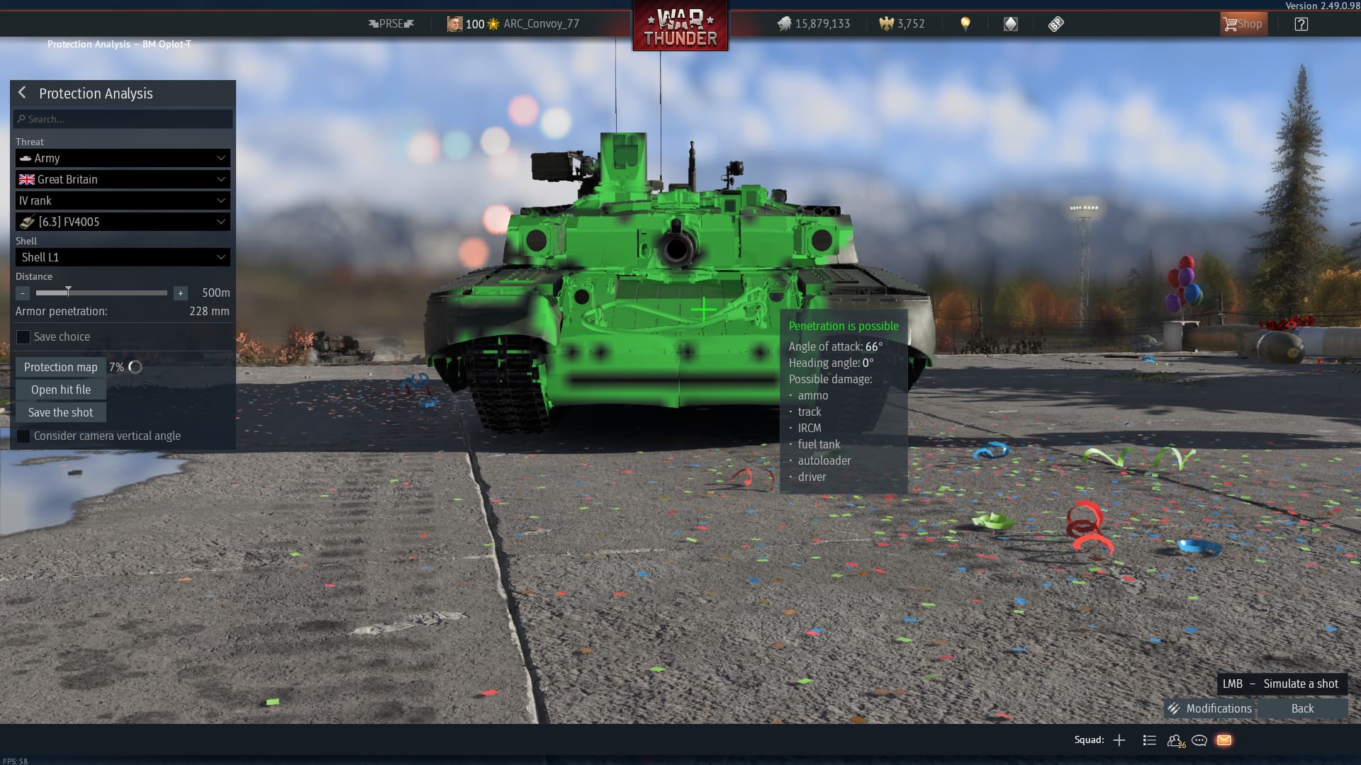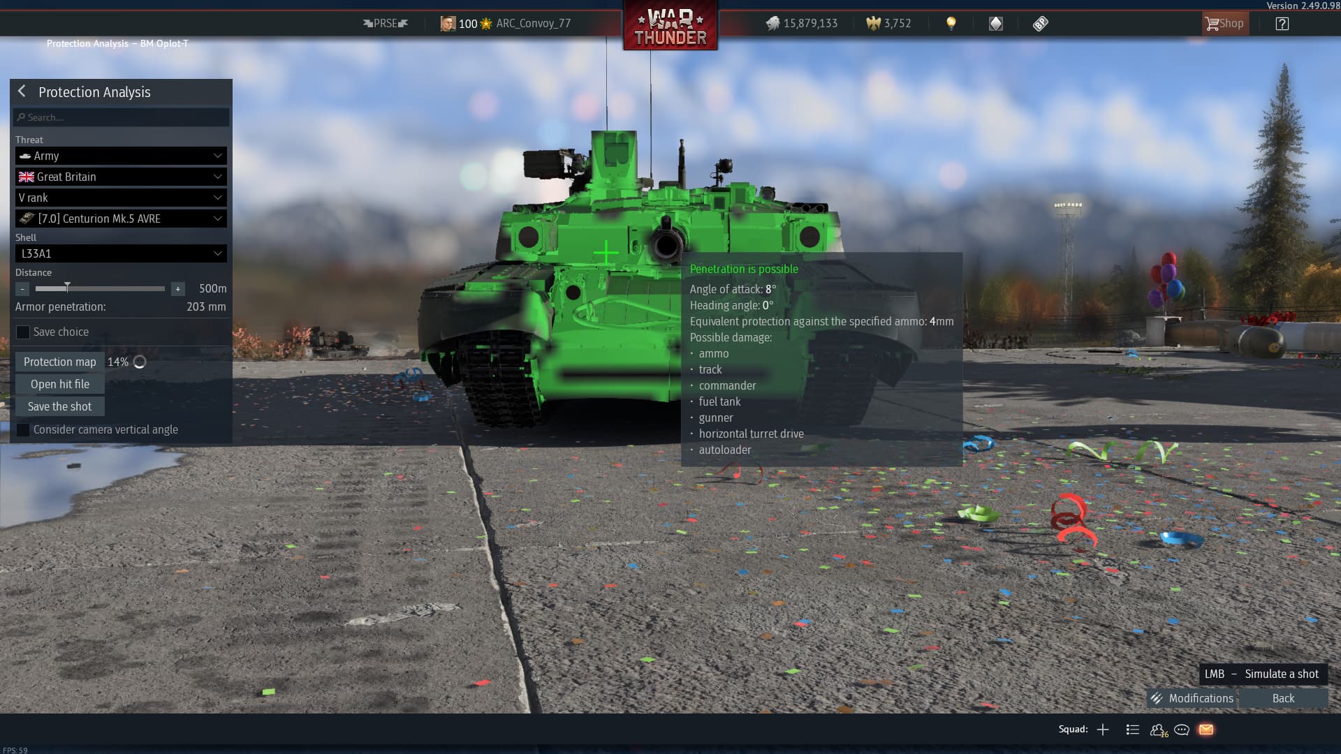 HHRA alone in ingame model is responsible for 417 mm of protection at 68 angle, while Gaijin in response to my report stated that reference total protection(including other layers and ERA) is 620, that leaves us with 203 mm of proptection from ERA + textolite + separation layer between ERA. And they somehow don’t see problem there claiming “wrong calculations”.