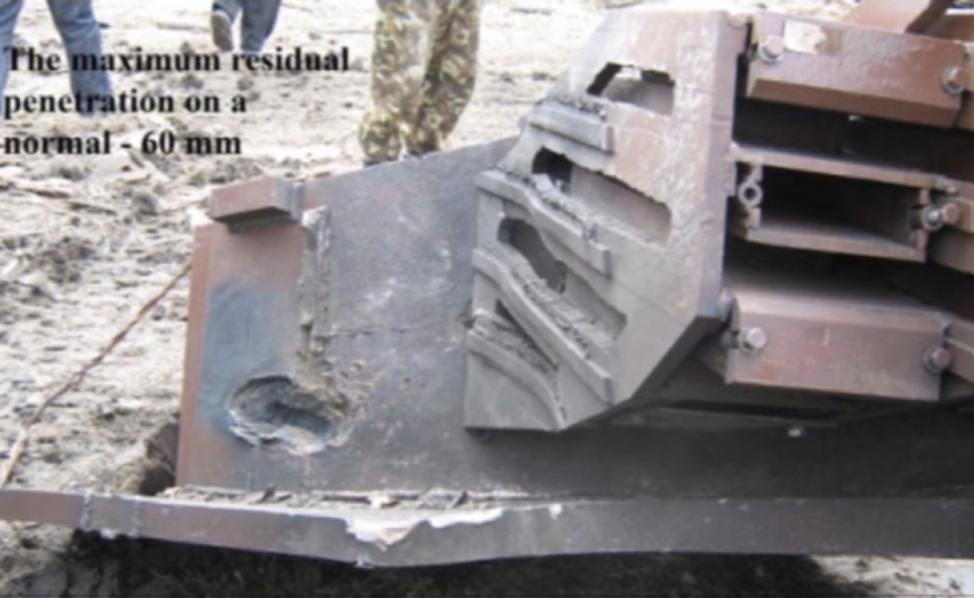 After encountering Duplet ERA, the residual penetration was only 60mm on the normal, for a 50 degree LOS firing angle, this means 93.34mm of residual penetration.