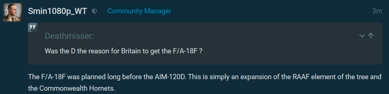 The 18F also wasn’t needed for Britain. Like I don’t care if the 18F does or doesn’t come to the US tree, but using “not needed” is a bit weak when Britain doesn’t need one either.