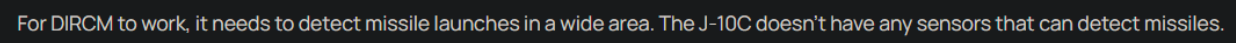 The J-10C has 360 MAWS… Which can obviously detect missiles… In a wide area…