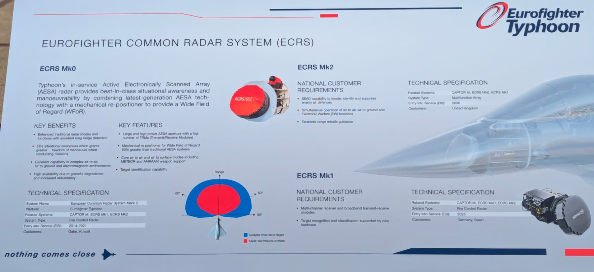 Both ECRS Mk0 and ECRS Mk2 radars are compatible with all Eurofighter Tranche 2 and beyond.