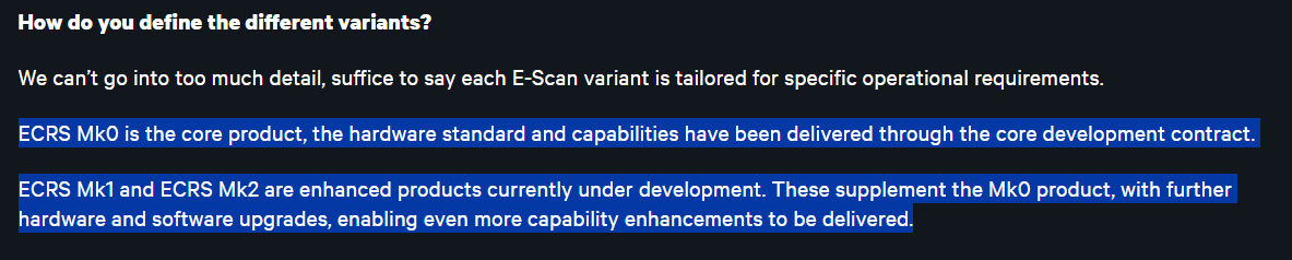 And you are totally right, but they are talking about the 3 Mk´s on that article, so yes, at that point the only one available was the Mk0 but they say that “the hardware standard and capabilities have been delivered through the core developement contract” (wich is the Mk0) and “enabling even more capability enhacements to be delivered”