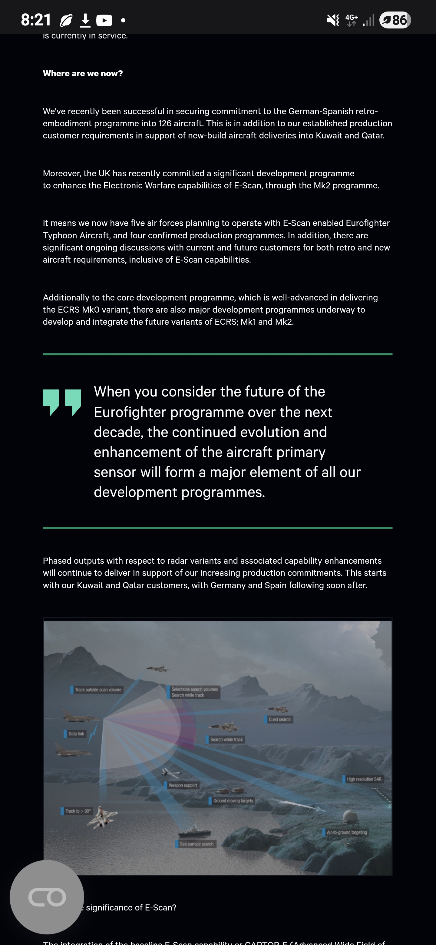 If you see that image is after they talk about the diferent owners/costumers of the EF and not about the multiple capabilities of the radar.