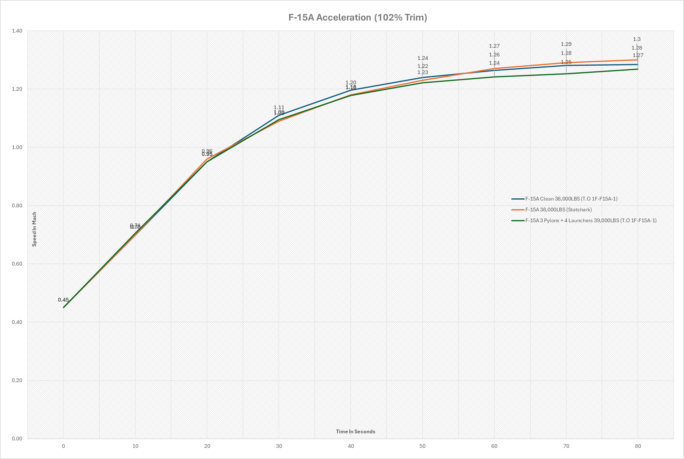 it still fairly closely matches performance charts for its acceleration (at least for 15a) - likely the drag is much too low and the engine is much too weak.