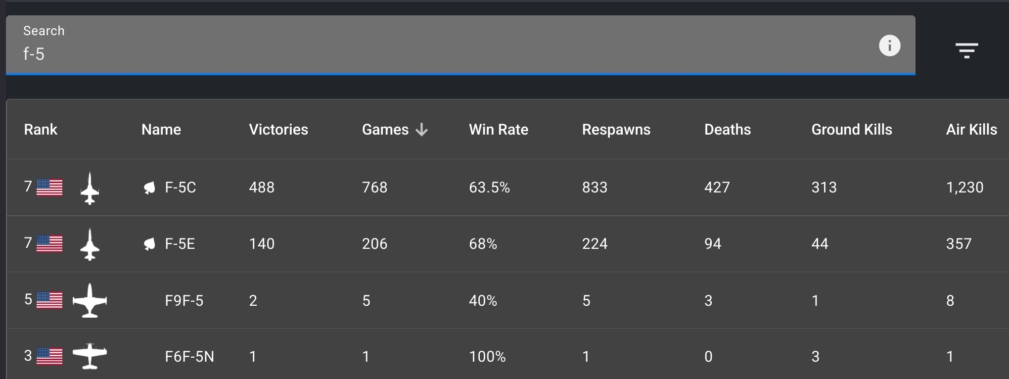 I say that f-5s are terrible because not even good players killed me on “these planes the f-5 eats alive” according to this community.