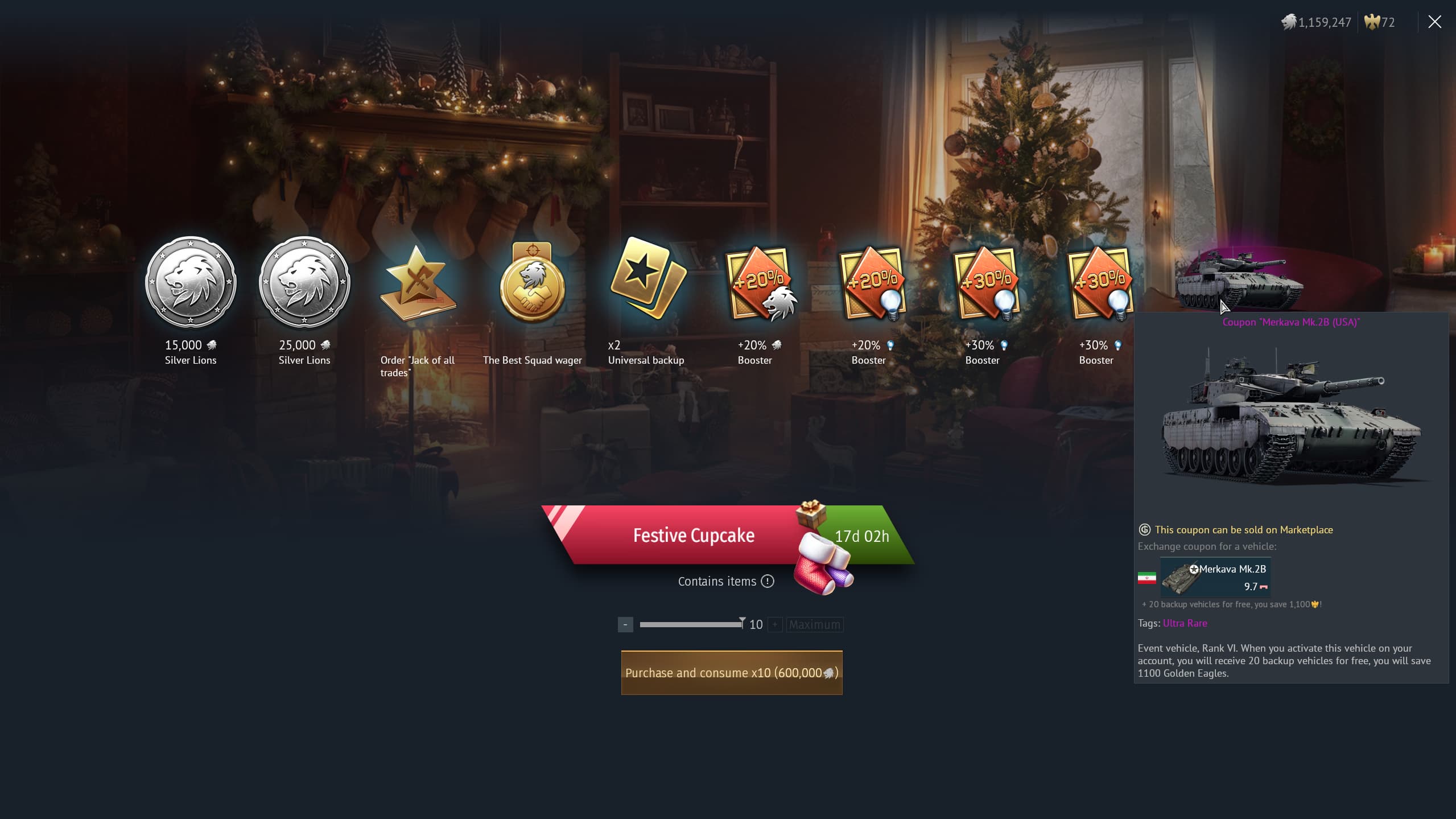 OH! And especially during the crate events, don’t forget about Wagers, and then Orders once the matches start! I believe ORDERS are affected by SL Boosters+prem vehicles+prem time 😉 (Can’t remember exactly how much orders get boosted, I just remember that WAGERS are NOT affected by SL bonuses/boosts.)