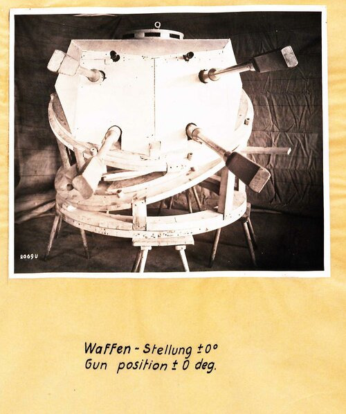 Rheinmetall-Borsig Flakpanzer design of late 1944 on an unknown chassis, sporting a turret armed with four MK 103s and two MG 131s. Allegedly, “metal was cut”, however a majority of the work manifested only in a partial wooden mockup.